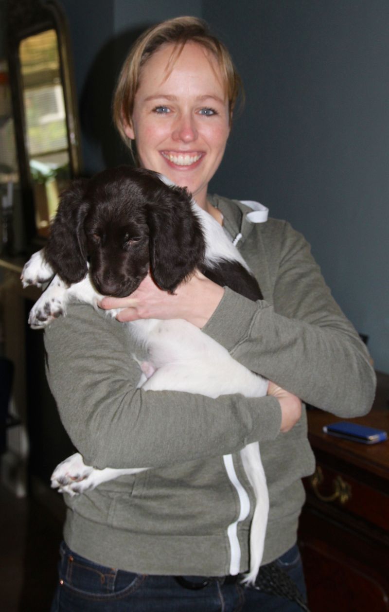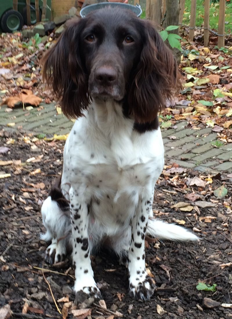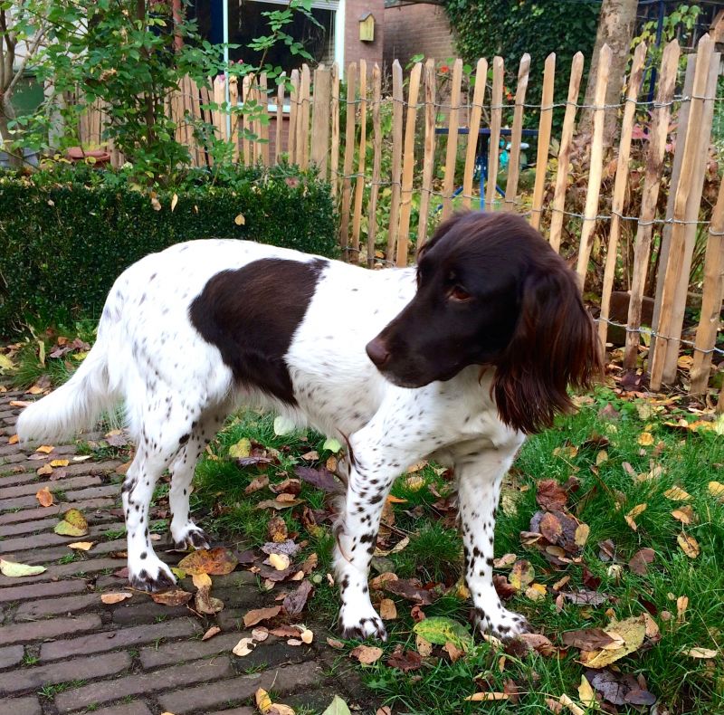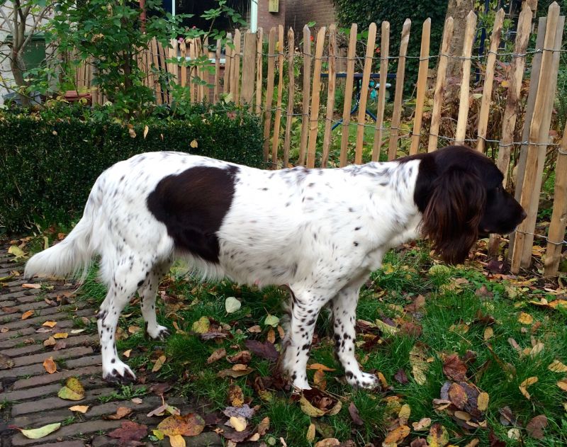 25 FEBRUARI; Tja, gisteren was het dan zover; Dobber werd opgehaald door zijn nieuwe eigenaar. Hij is 10 dagen als laatste pup nog bij ons geweest en dat was heel bijzonder. We hebben hem ook zoveel mogelijk gesocialiseerd en hem meegenomen waar kon. Hij is ook mee geweest in het veld en dat vond hij toch leuk! Volop uitdagend en nieuwsgierig was hij aanwezig, maar ook zo aanhankelijk en lief. Wat hebben wij het leuk gehad met hem! Gisteren kwamen Ruth en haar vader. Ruth had heerlijke appeltaart gebakken; dank je wel! Voor het slagen van haar opleiding als dierenartse had Ruth van haar ouders een beeldje van een jachthond gekregen. Als de tijd voor haar rijp zou zijn mocht ze deze inruilen voor een echte jachthond. En gisteren was de dag. Dobber zal bij haar gaan wonen en wat zal hij het goed gaan krijgen. In de toekomst mag hij ook mee op jacht! Wij wensen Ruth dan ook heel veel plezier toe met haar prachtig reutje.