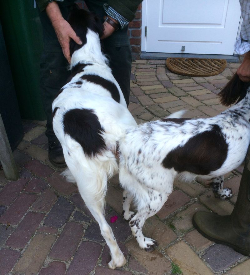 Het was prachtig om te zien hoe het spel tussen hen ging. Ze zijn heel gek met en op elkaar. Nigel gedroeg zich als een heuse gentlemen. Ook Katja en Jos hebben meegeholpen door o.a. Bente bij hen te laten logeren en dat terwijl er nog een andere reu in huis was die Bente ook wel erg leuk vond....