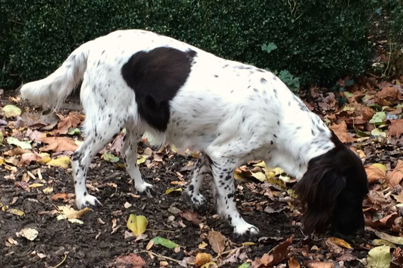 Vanavond heeft Bente vers vlees gekregen, dat ging er wel in. Bijgevoegd foto vanmiddag in het bos en nog een foto van Bente als pup.