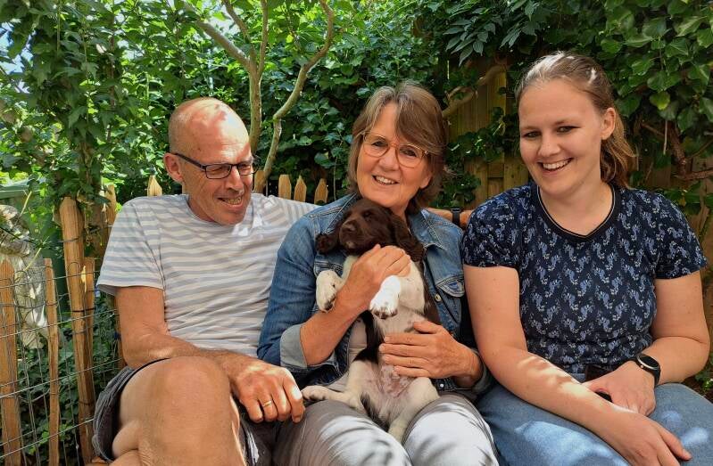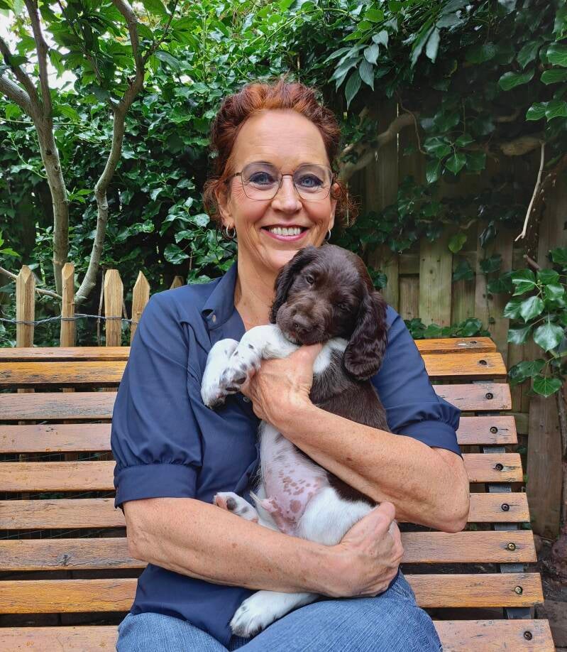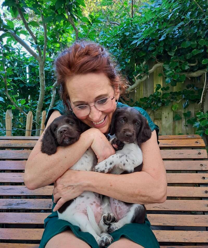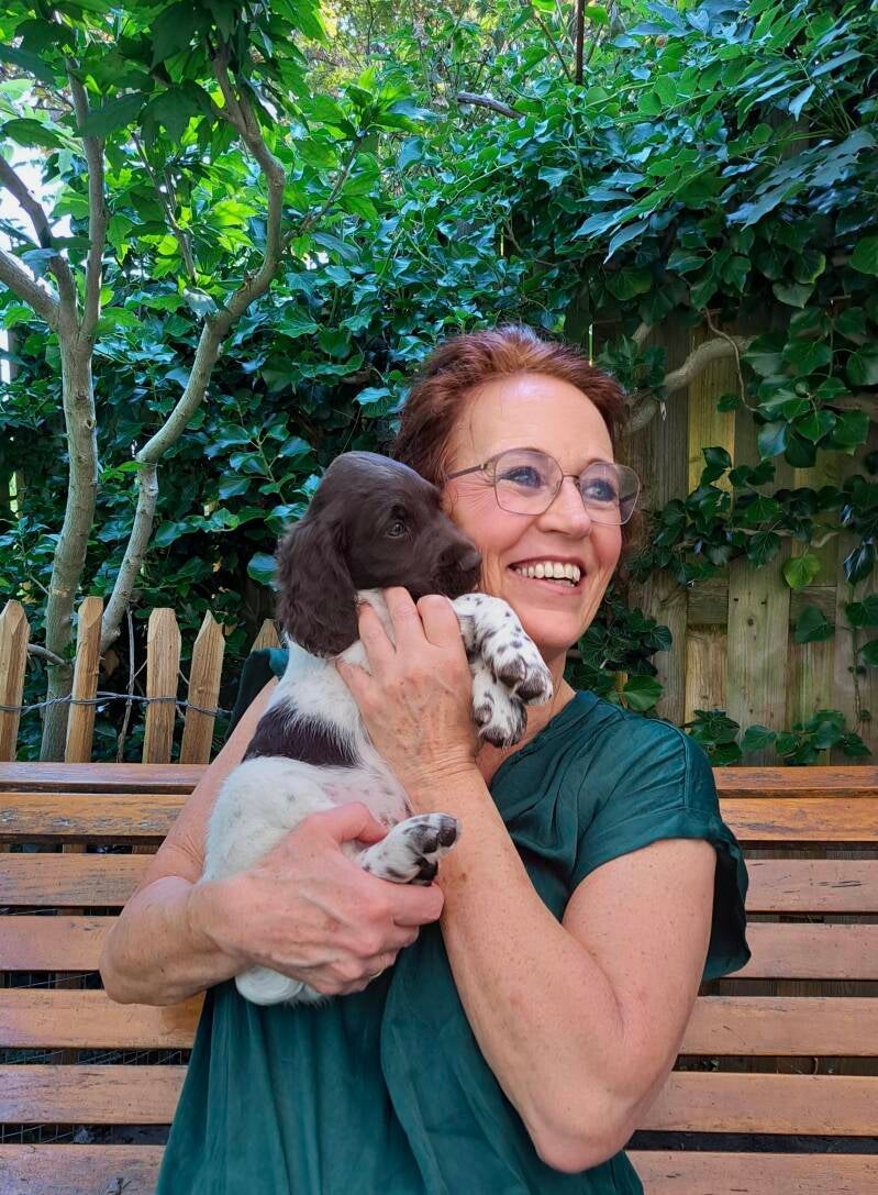 9-7-2023; Daar gaat ze als 2de pup; Teefje Daantje-Puck van de Hazannekamp en ze gaat wonen bij Olaf en Simone en bij hun 2 andere Heidewachtels Sacha en Lux. Simone zal met Daantje de jachttrainingen gaan doen en alles wat daaruit kan gaan volgen. Wij wensen jullie heel veel plezier , geluk en al het goeds toe met Daantje.