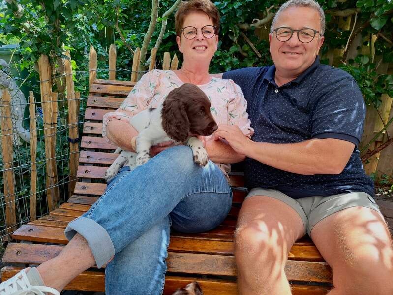 10-7-2023; Als 3de pup vertrekt reutje Dex-Lou van de Hazannekamp. Hij gaat wonen bij Paula en Frank. Frank zal de jachttrainingen gaan doen en Lou zal buiten gezinshond ook als jachthond gebruikt gaan worden. Wij wensen jullie heel plezier, geluk en al het goeds toe met Lou.
