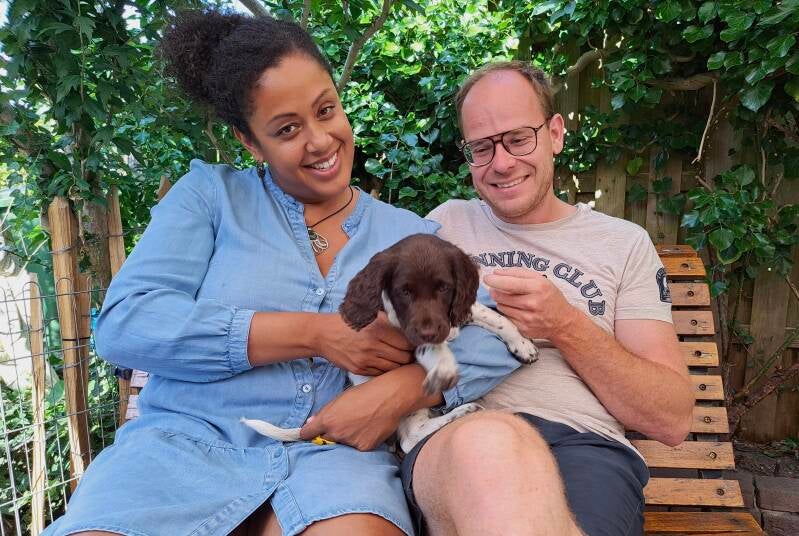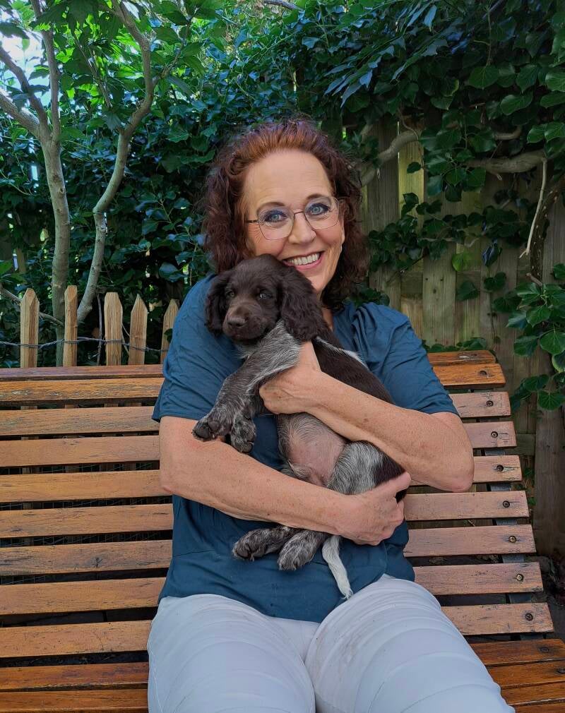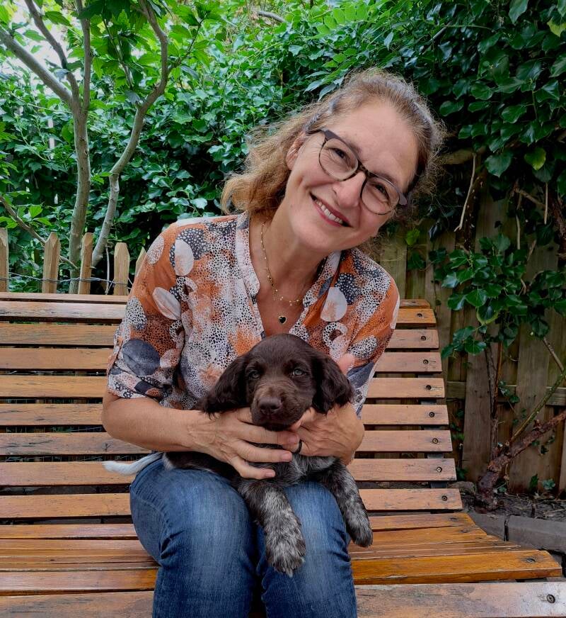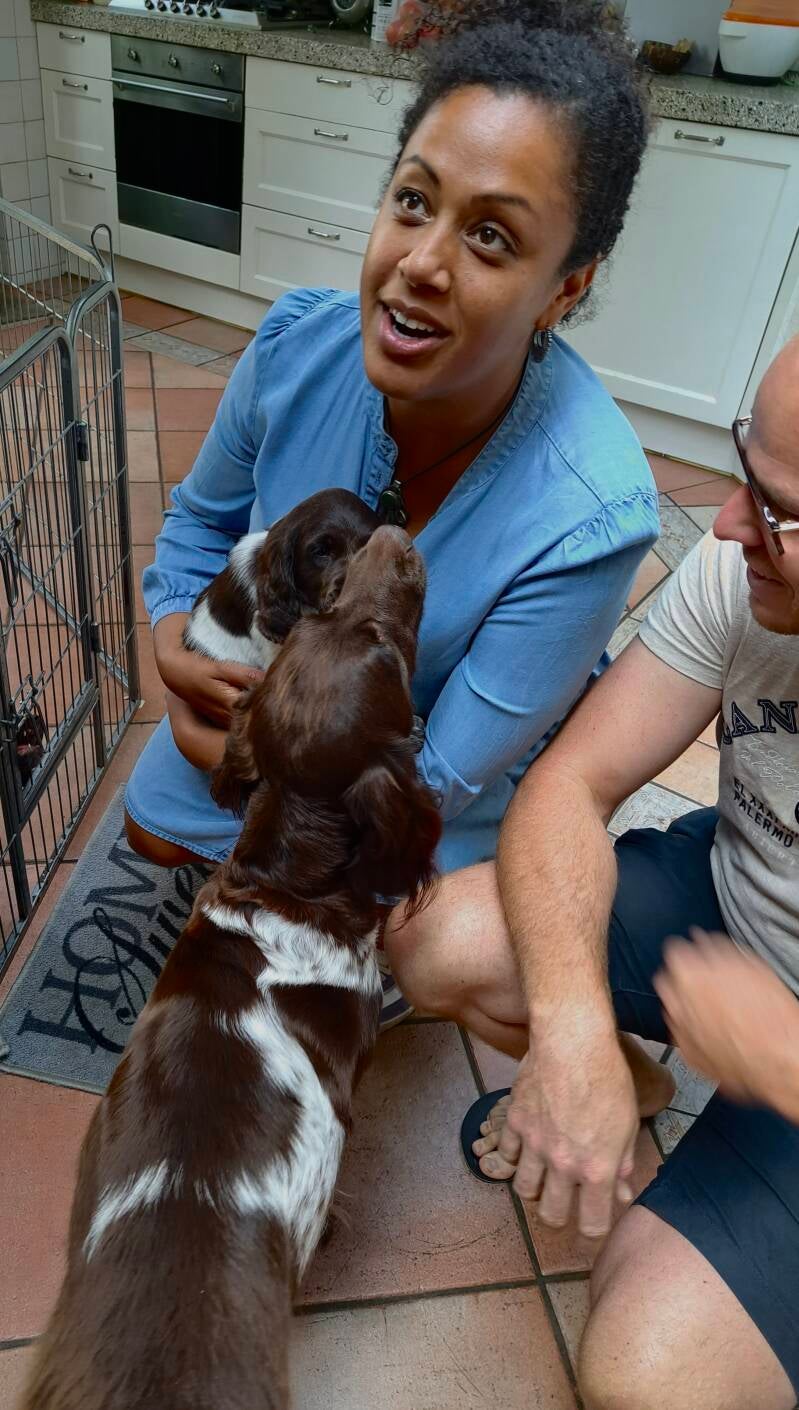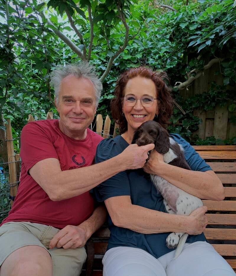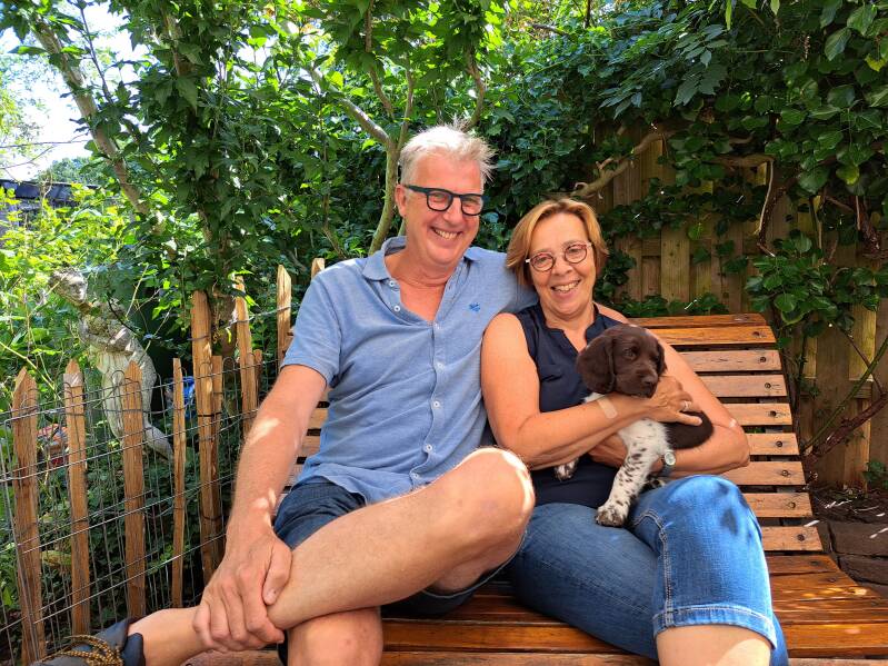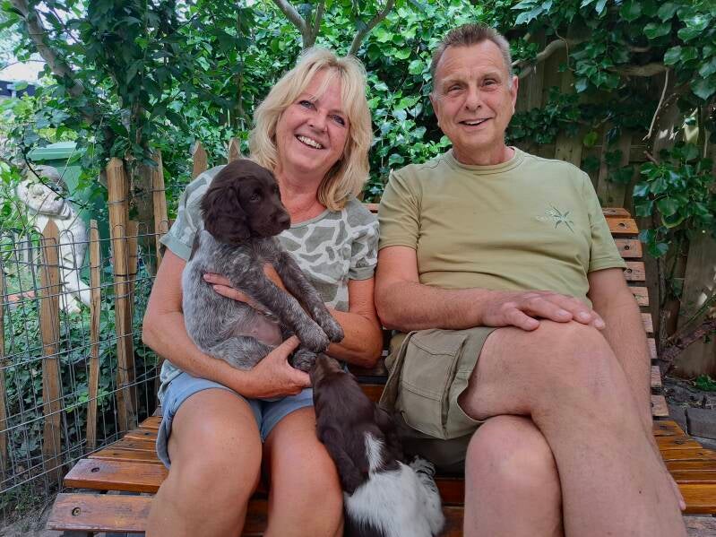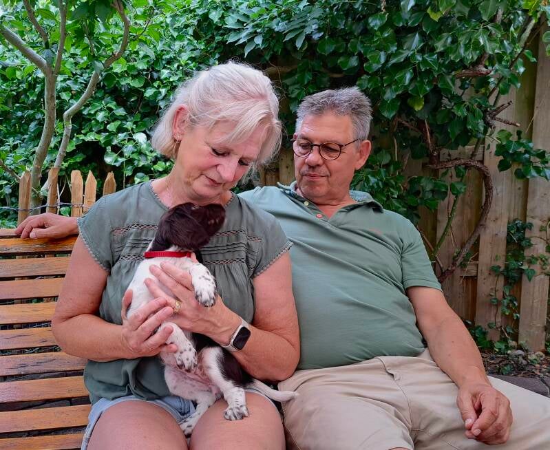 15-7-2023; Als 9 de pup is reutje Duke-Mex van de Hazannekamp vertrokken en gaat bij Cathrin en Erik en hun Heidewachtel Diego wonen en zal ook zeer regelmatig geknuffeld gaan worden door hun kinderen die niet meer thuis wonen. Cathrin zal de jachttrainingen gaan doen met Mex en alles wat daaruit kan gaan volgen. Wij wensen jullie heel veel geluk, plezier en al het goeds toe met Mex.