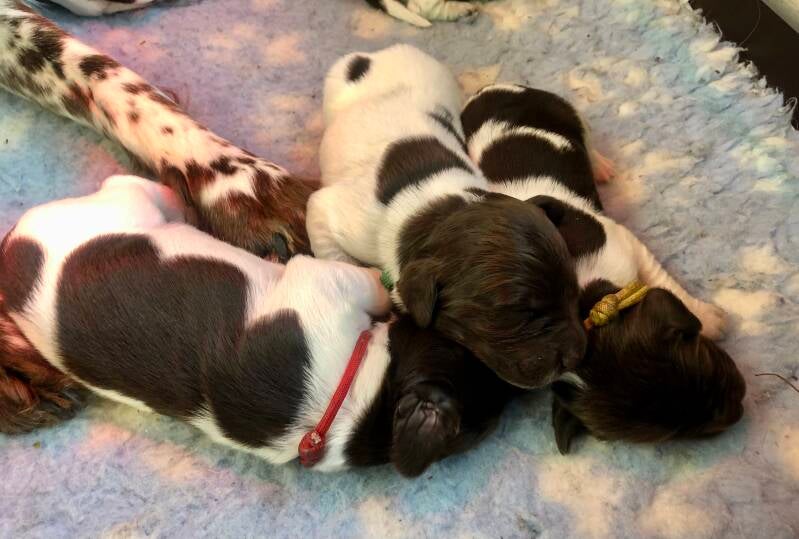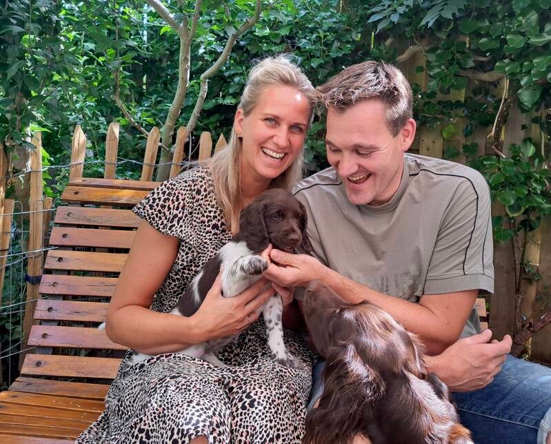 10-7-2023; Als 4de pup vertrekt teefje Dusty-Bo van de Hazannekamp. Zij gaat wonen bij Sandra, Marco en hun kinderen Ace en Isa. Marco zal de jachttrainingen gaan doen en Bo zal buiten gezinshond ook als jachthond gebruikt gaan worden. Wij wensen jullie heel veel plezier, geluk en al het goeds toe met Bo.
